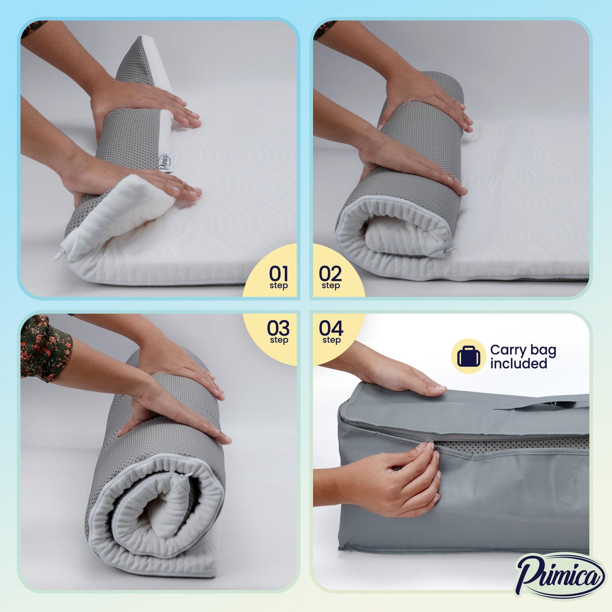 - TRAVEL-FRIENDLY CONVENIENCE: Designed for modern families on the go, our portable crib mattress is easy to transport. Roll it up, secure it with velcro straps, and carry comfort with you, ensuring your child's sleep routine remains uninterrupted.